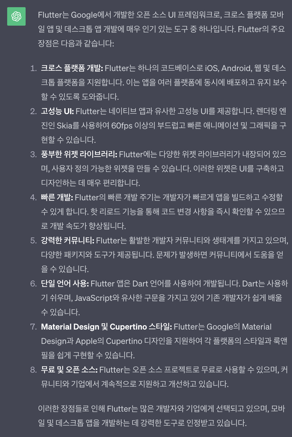 GPT에게 물으니 Flutter가 적합하다고 느껴져 바로 Flutter 개발 환경을 세팅하고 생각한 기능을 하나씩 구현해 보기로 했습니다. 😄